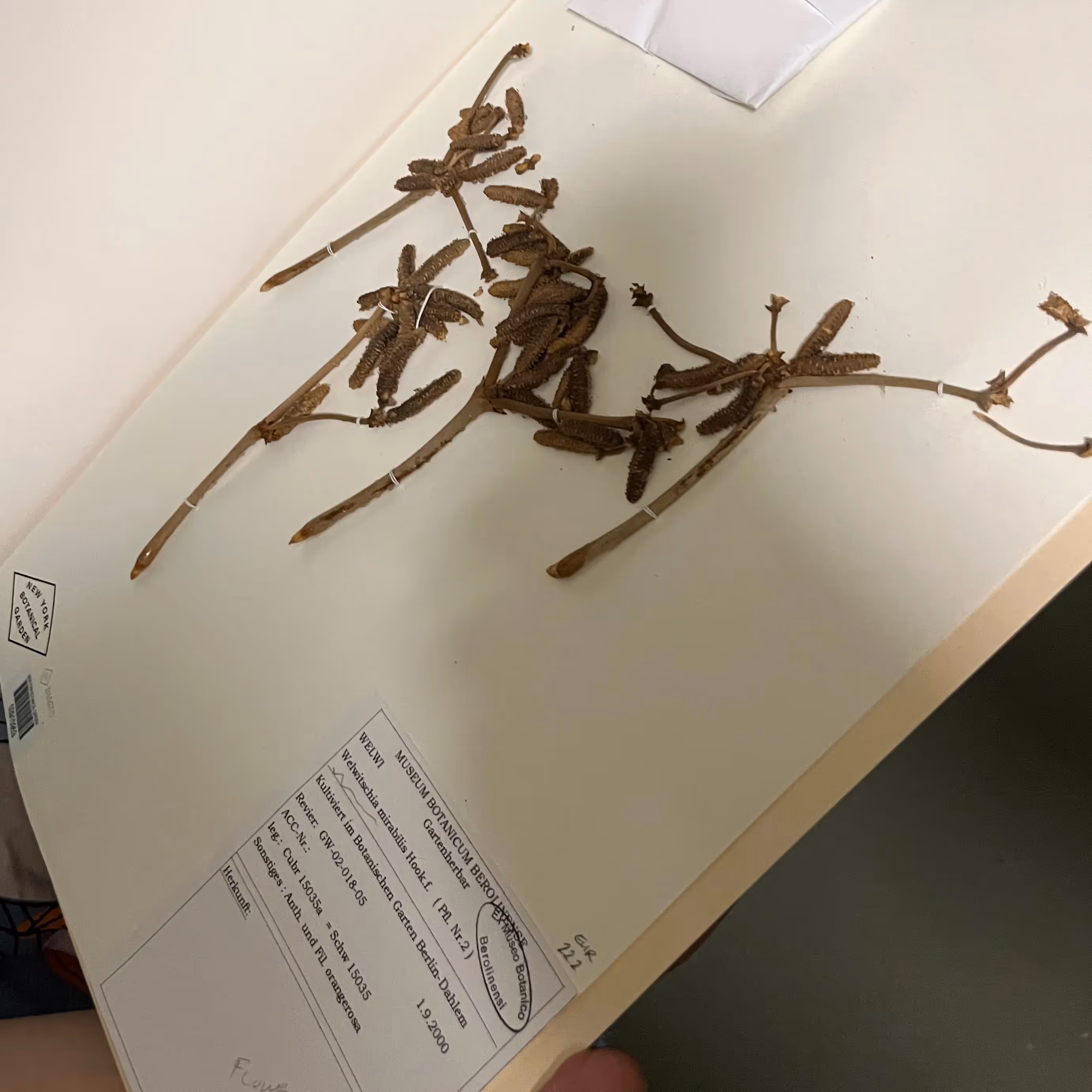 All of that aside, I love plants—living, dead or otherwise indeterminable—so having the opportunity to be shuttled around the cool halls on a hot Summer’s day was a joy. We meandered through corridors, passed shared offices and around students & staff. We then made our way to one of the main collections, containing many stacks. After getting the general lay of the land and some introductory information, we were able to poke around a bit. It sort of goes without saying, but we mostly focussed on certain genera/taxa of the succulent variety and got to see many significant specimens. A highlight being a Welwitschia from a 1973 collection in Angola.