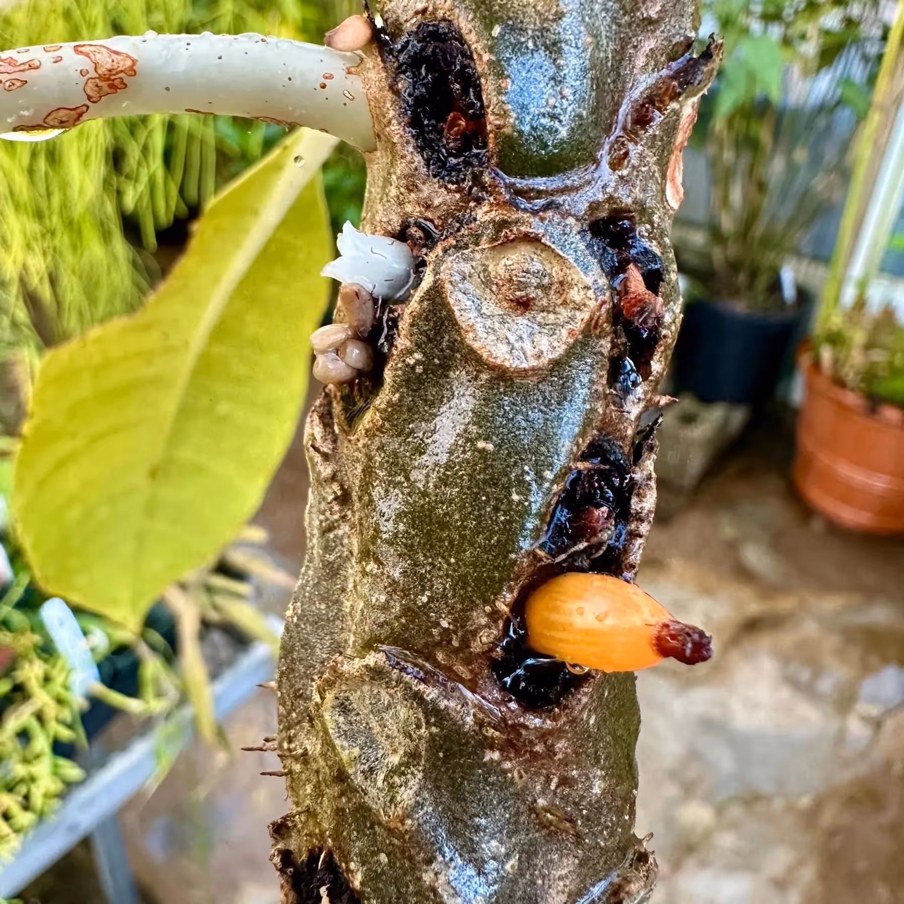 - Myrmecodia living happily after having its tuber cut to expose interior chambers.