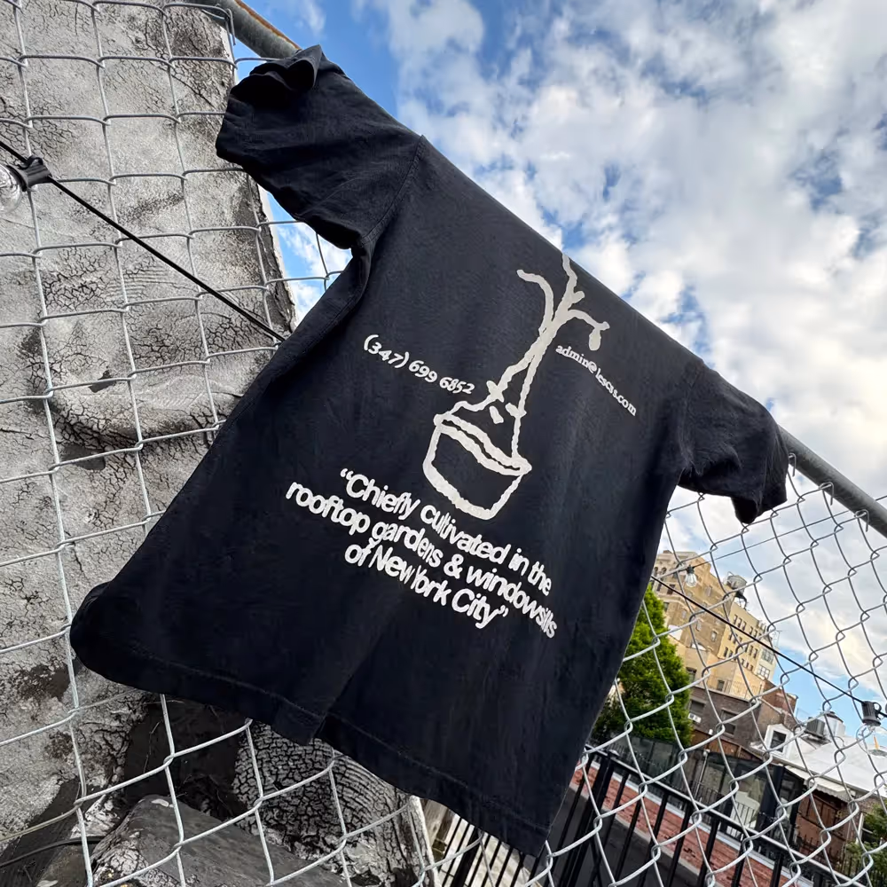 The blank is washed black, pigment-dyed & heavyweight 7.6 oz 100% cotton. The fit is slightly cropped with a boxy, relaxed fit and it'll get get softer with each wear.